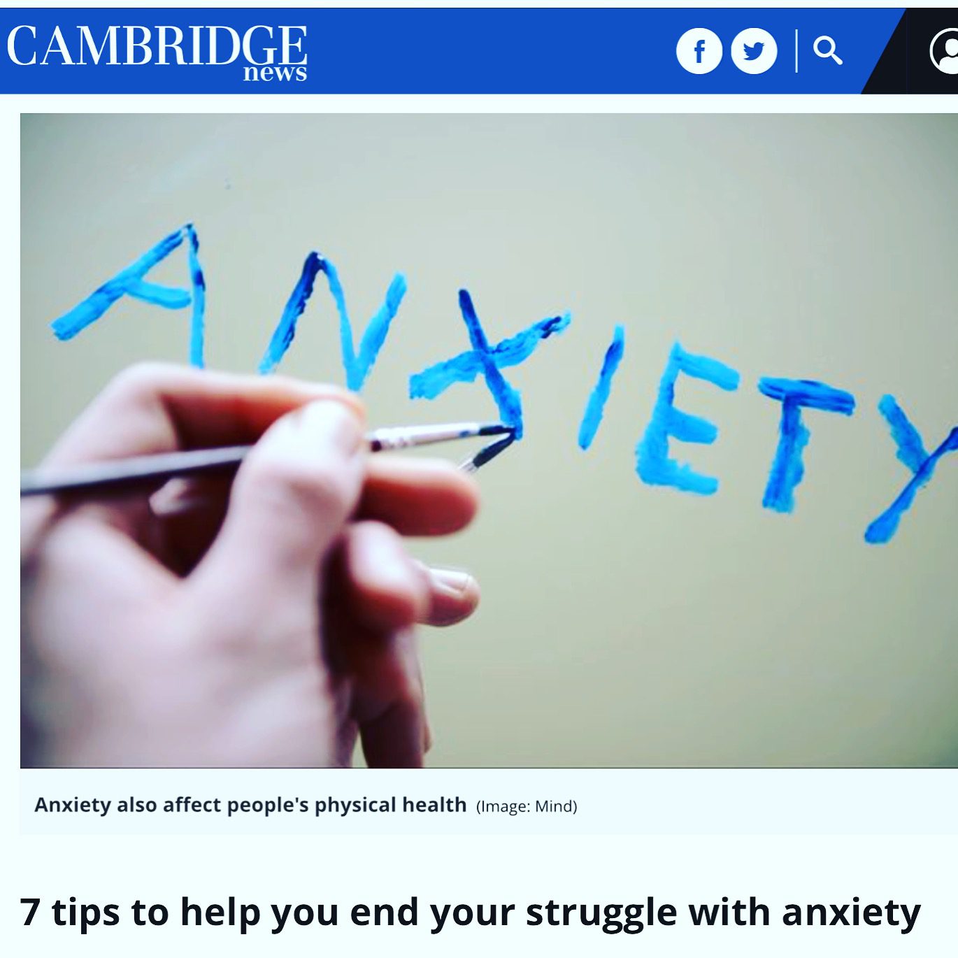 You can read my article in the Cambridge News here: 7 Tips To Help You Start Ending Your Struggle With Anxiety.