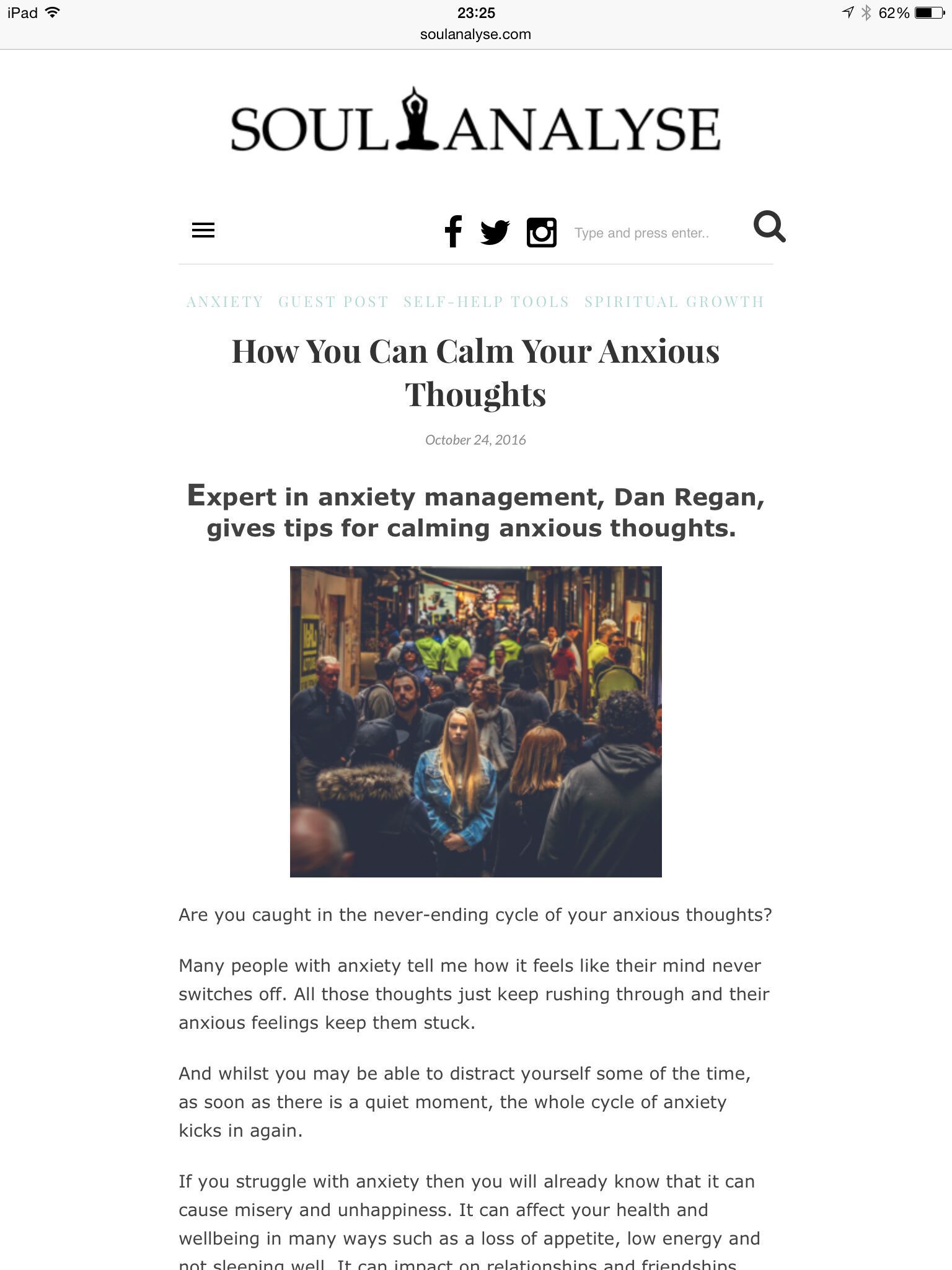 In the article I cover five ways to start calming those anxious thoughts. You can read the full article by following the link below.
