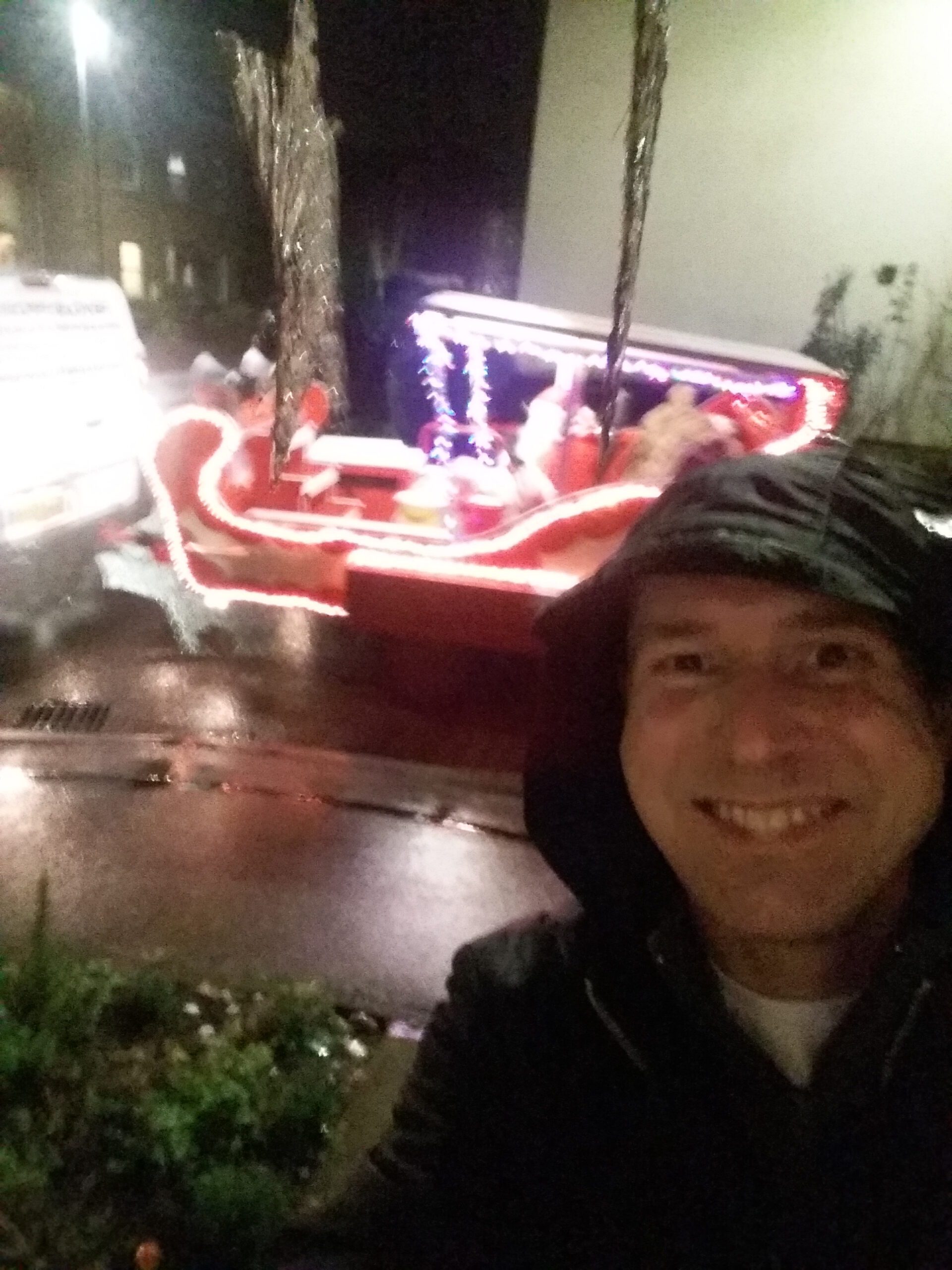 And the other night the big man himself (Father Christmas!) came past our house in his sleigh ( a nice grainy image so that you can’t tell whether it is the real Santa or not…!!):