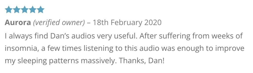I always find Dan’s audios very useful. After suffering from weeks of insomnia, a few times listening to this audio was enough to improve my sleeping patterns massively. Thanks, Dan!